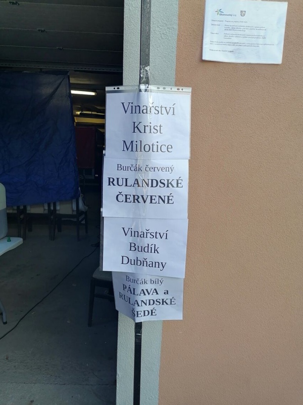 „Dovezli jsme šest druhů červeného a bílého burčáku z Vinařství Holánek, Vinařství Krist a Vinařství Jarmila Tomášková. Některé jsou už rozjeté, jiné se teprve rozjíždí, ale dobré jsou všechny," sdělil Večerníku za pořadatele Jaroslav Záhora. Letos od vinařů přivezli 240 litrů, vloni totiž měli o 20 litrů méně a chybělo. „Sháněli jsme všude možně aspoň pár litříků, ale marně. Tak jsme se pojistili," smál se.