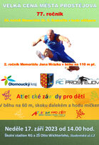 Již více než tři čtvrtě století existuje atletická Velká cena města Prostějova! V neděli 17. září od 14.00 hodin na školním stadionku RG a ZŠ Otto Wichterleho Prostějov ve Studentské ulici proběhne její 77. ročník, který má ozdobit svou účastí špičková česká osobnost královny sportů.